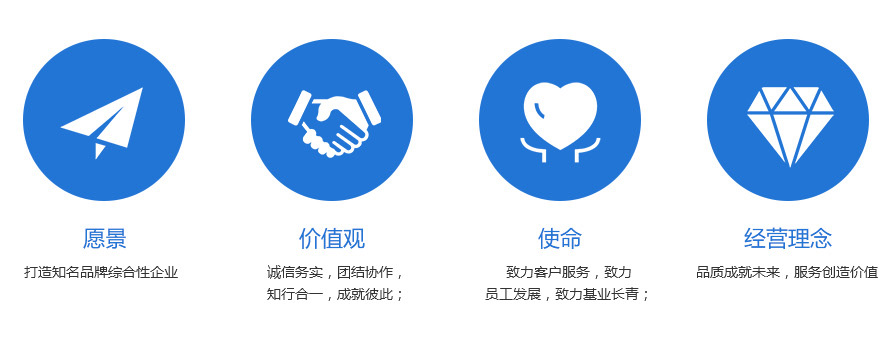 集團堅持“品質(zhì)成就未來,服務(wù)創(chuàng)造價值”的經(jīng)營理念,形成“誠信務(wù)實,團結(jié)協(xié)作,知行合一,成就彼此”的價值觀,以“致力客戶服務(wù),致力員工發(fā)展,致力基業(yè)長青”為使命,打造知名品牌綜合性企業(yè)。